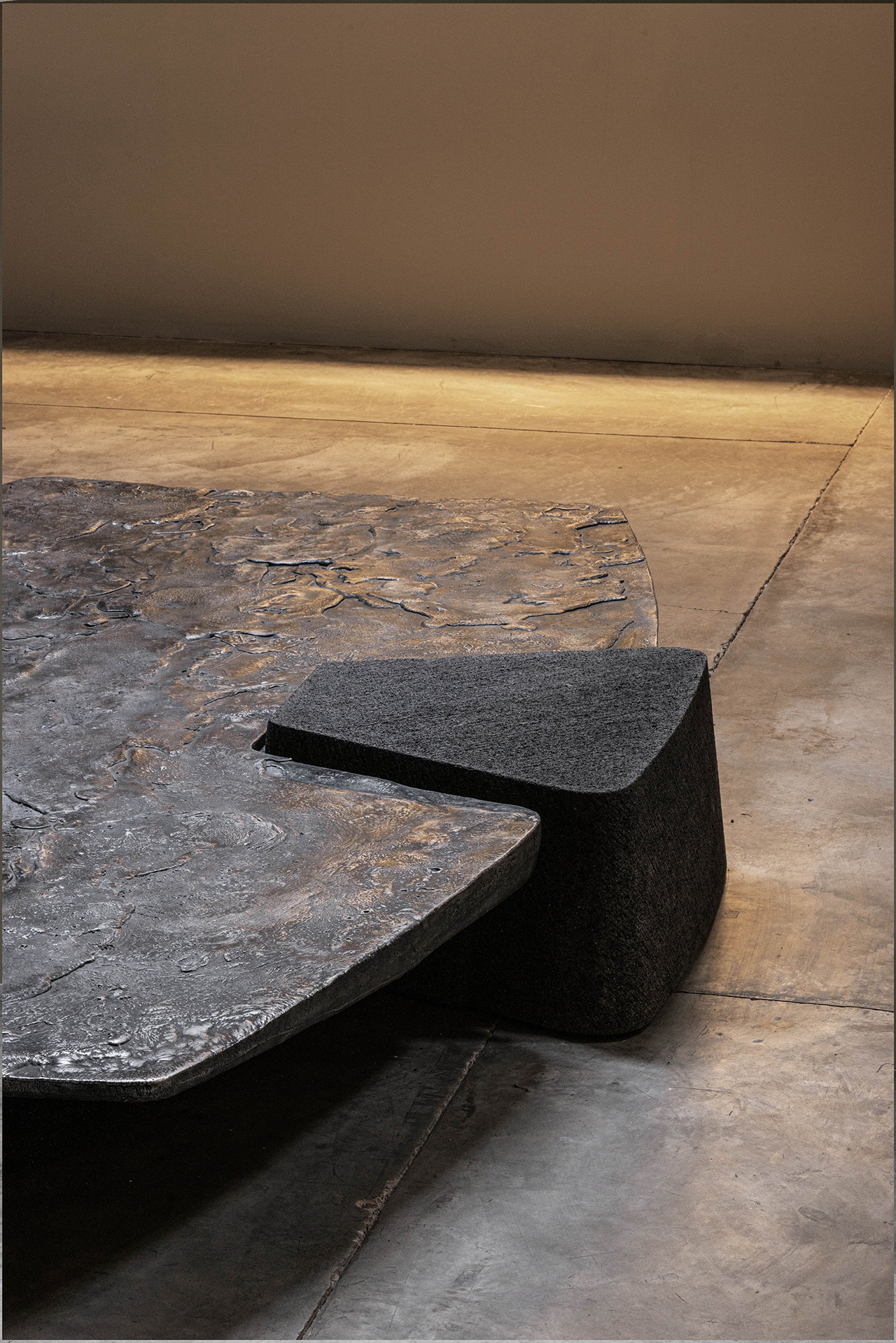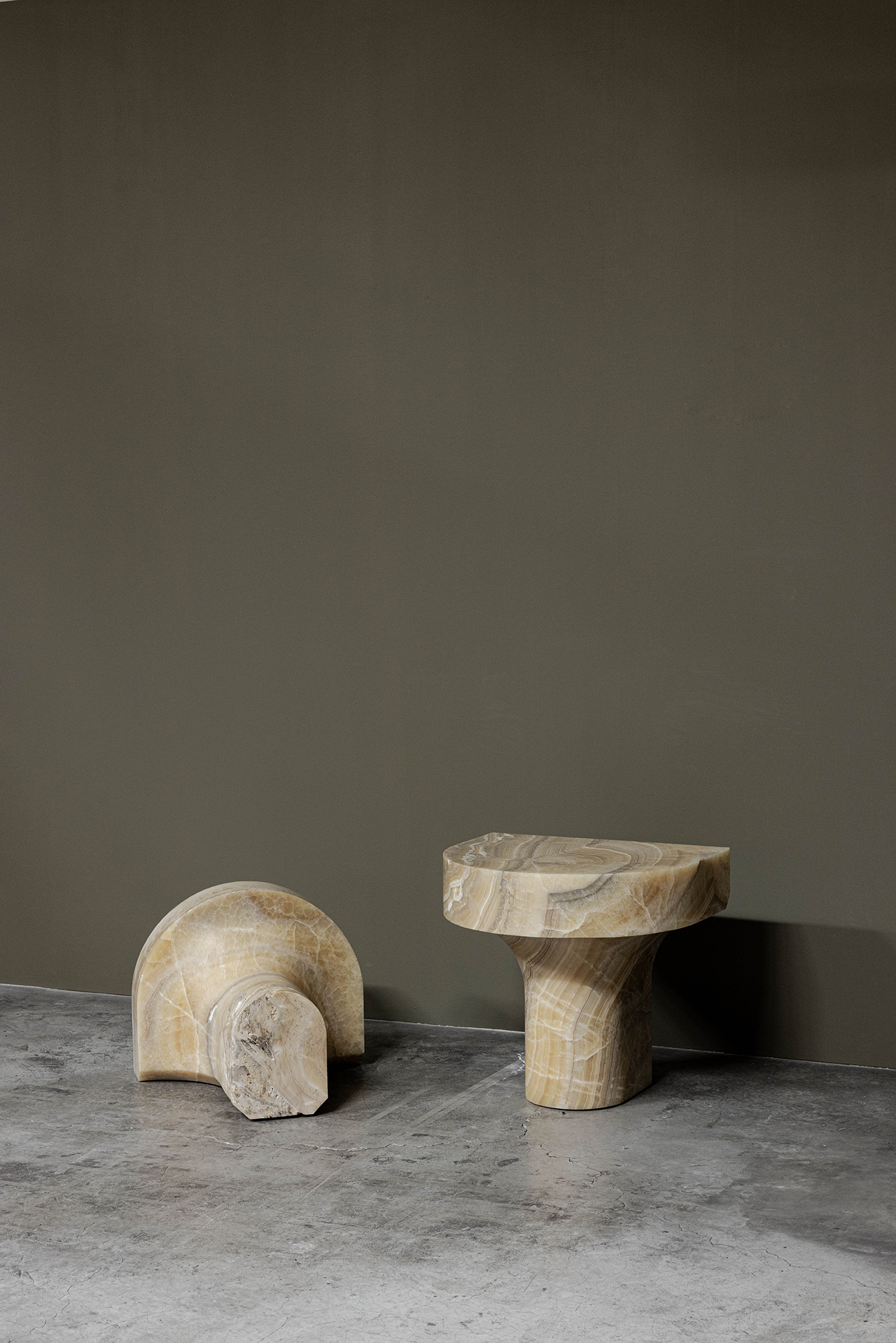 Both Exhuma and Magma follow this same path: shaped within their molds and later unearthed. Complementing them are the new Símbolo Side Tables in amber onyx, which continue this legacy where craft and transformation remain deeply intertwined.