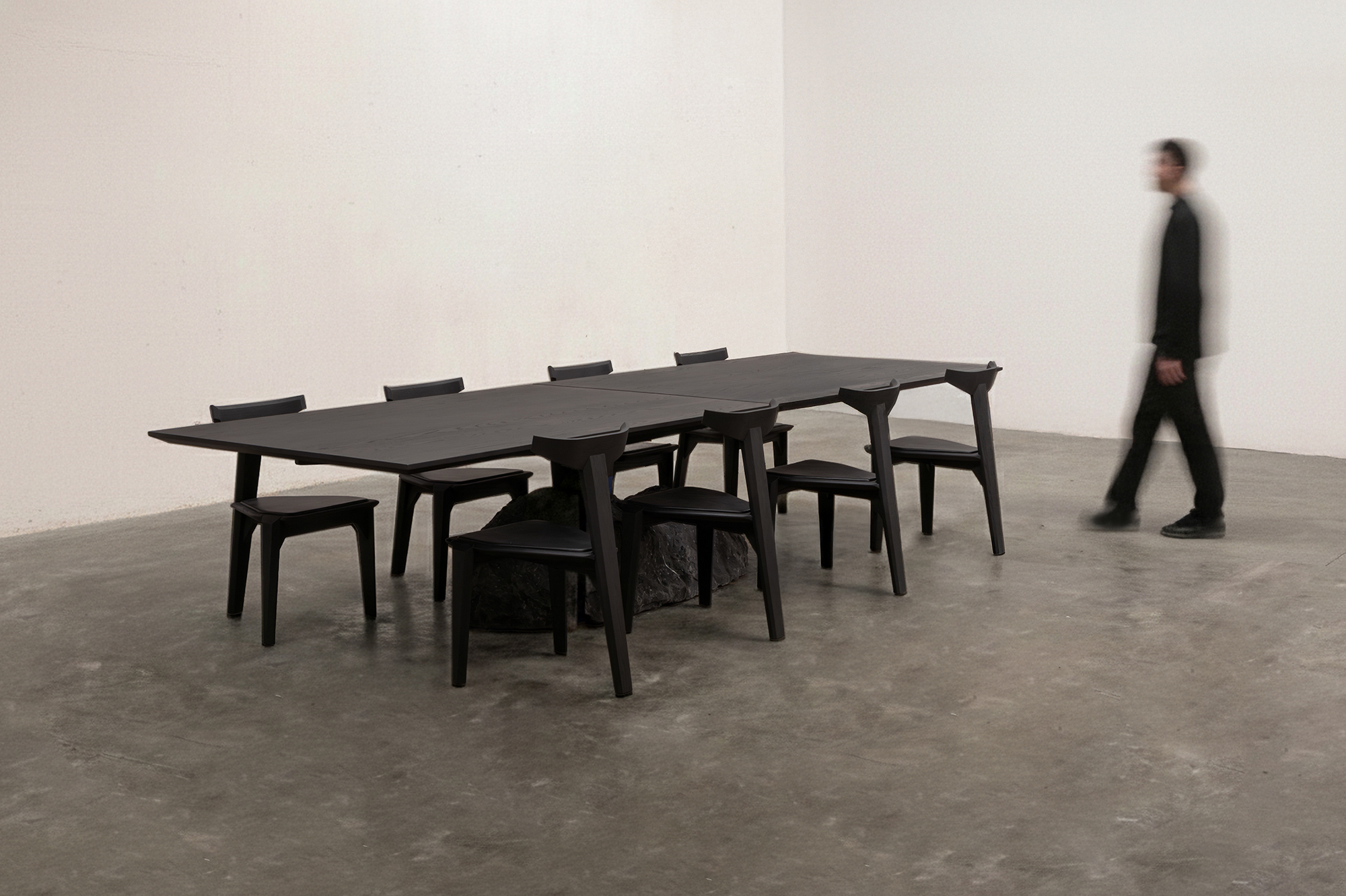 Ofrecemos adaptaciones a la medida de todas nuestras piezas; aquí aparece la iteración más reciente de la mesa Humo, con una cubierta de 3.8 metros de largo.