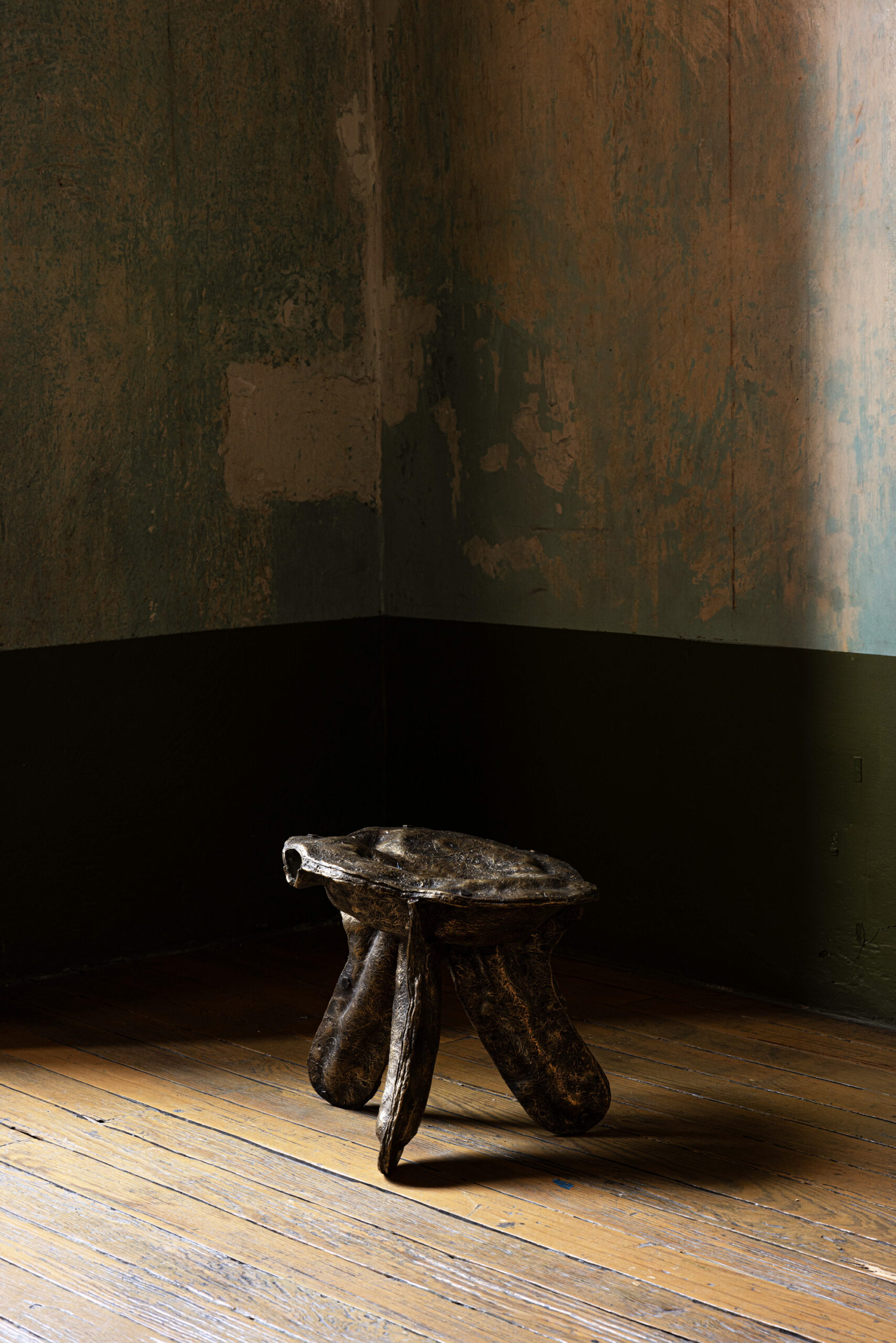 Los moldes de fibra de vidrio utilizados originalmente para replicar los ‘Memoria Stools’ son ahora rescatados y fundidos en bronce, conservando esta nueva capa de memoria: la ‘Memoria de la Memoria’. Se trata de una réplica de una réplica, la memoria de una memoria. No obstante, las formas originales de los taburetes quedan veladas y ocultas dentro del material.