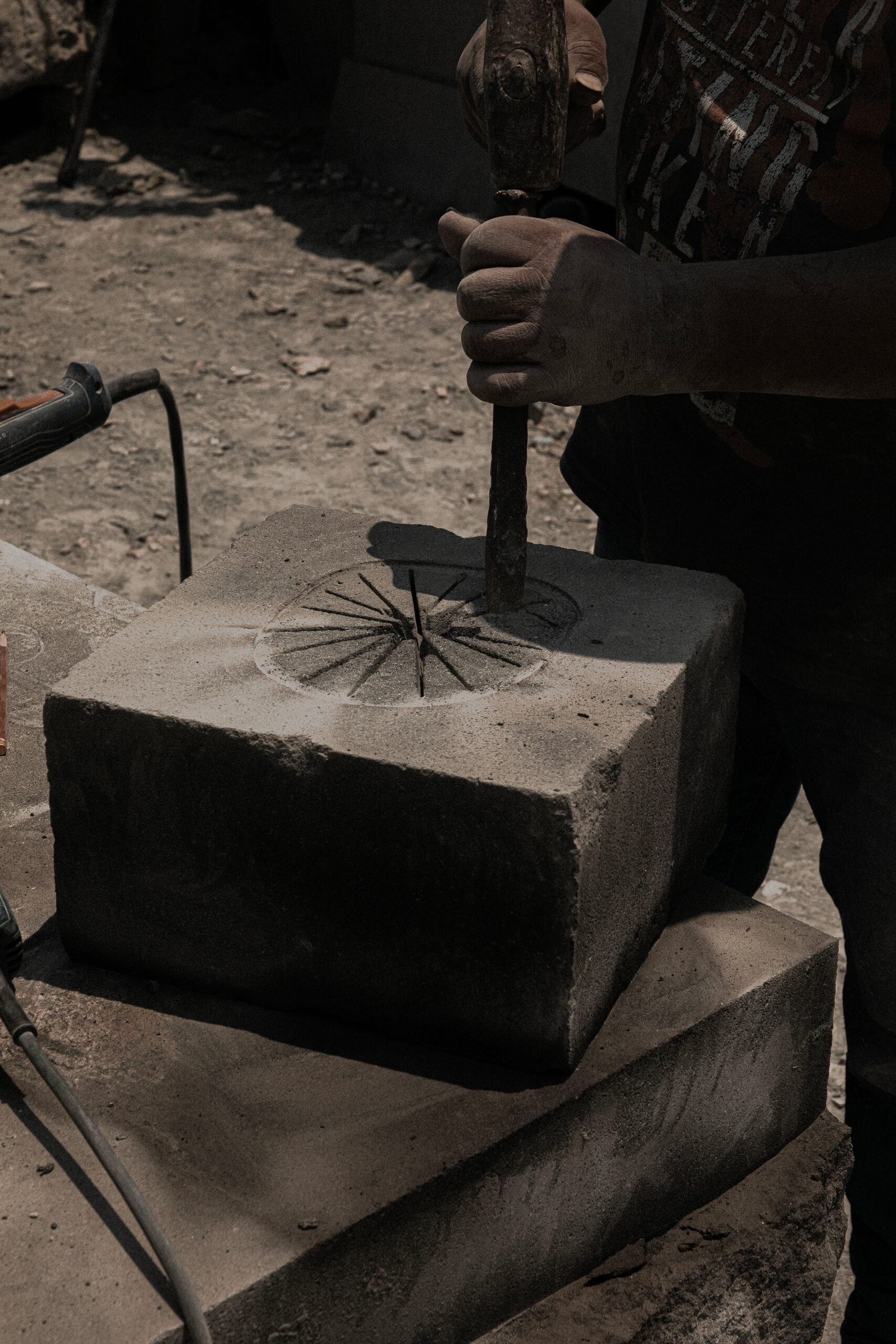 This Open Showroom explores the processes of geological extraction that shape our pieces. Stone and metal emerge from the earth and are transformed through sand and volcanic stone molds — a process that carries both ancestral memory and contemporary techniques.