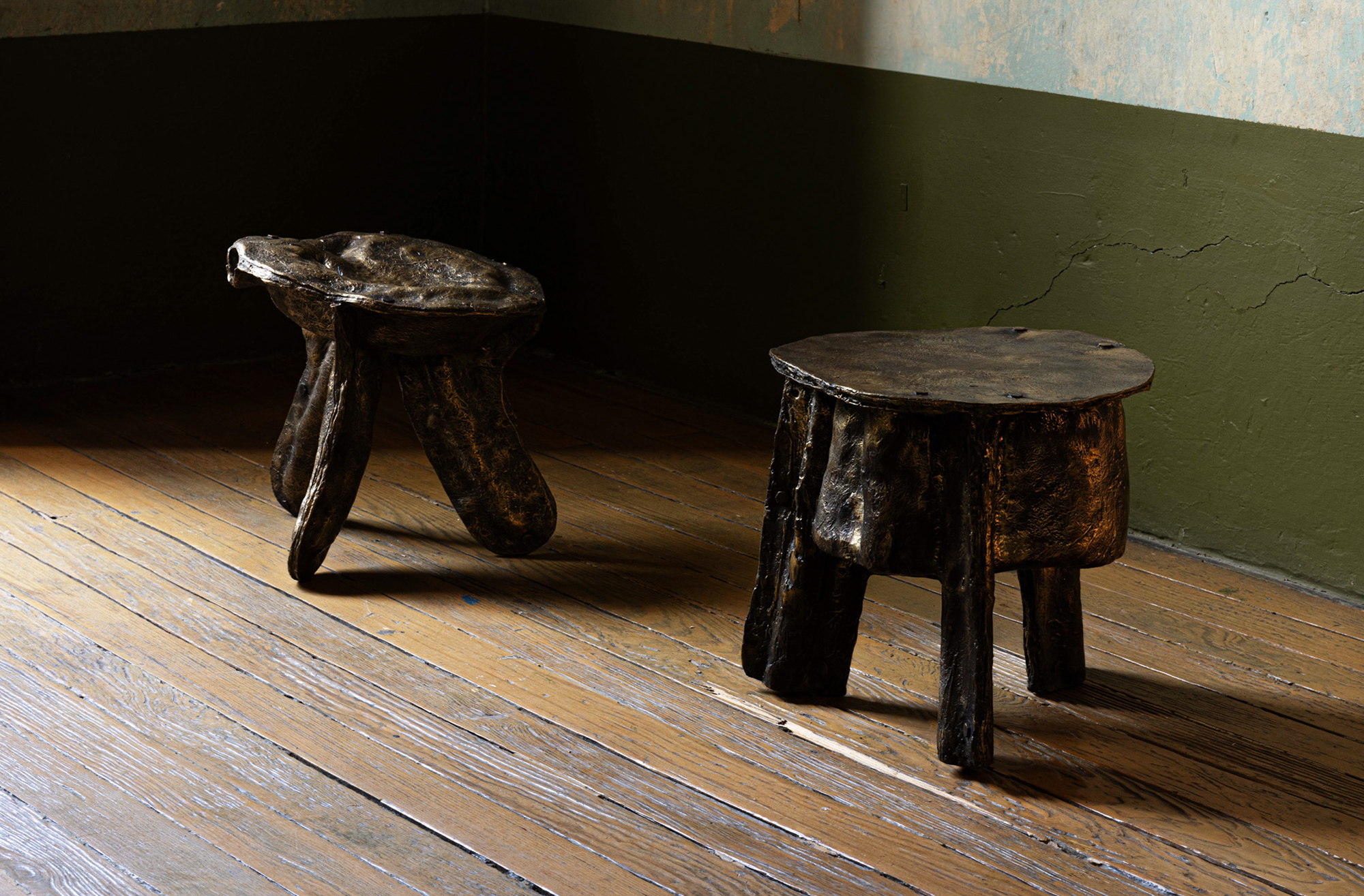 ‘Memoria de la Memoria’ asegura la continuidad del trabajo previo de EWE Studio, ‘Memoria Stools’, el cual surge de la fascinación por los objetos tradicionales utilizados en la vida cotidiana de los artesanos. Una serie de taburetes se transforma en objetos atemporales mediante el acto de fundirlos en bronce, preservando su esencia a perpetuidad.